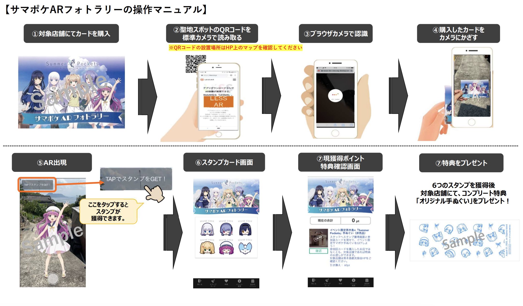 『Summer Pockets』の聖地をめぐるAR体験イベントを開催します。男木島で聖地となっているスポットを巡り、AR上のキャラクターと共に写真を撮りながらスタンプを集めきり、特典賞品をゲットしましょう。
